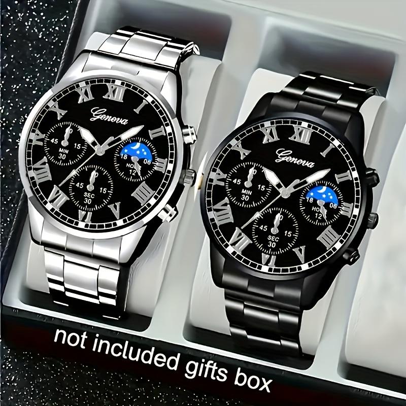 Geneva high-quality men's luxury belts fashionable quartz watches casual men's round business sports luxury quartz watches