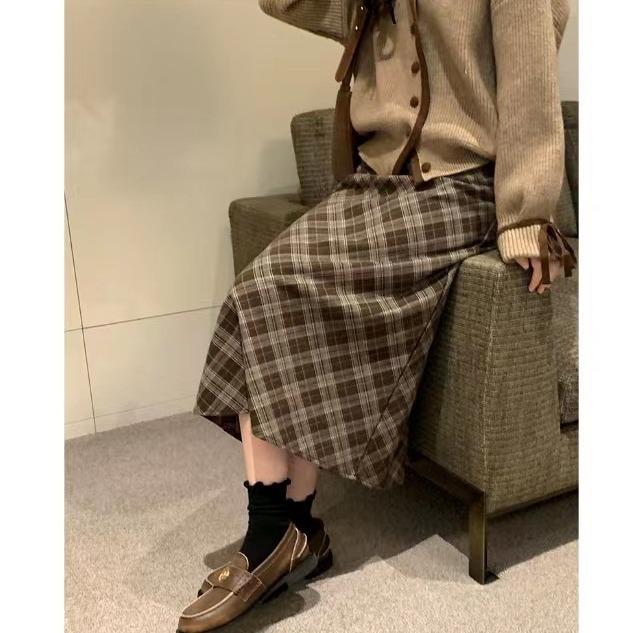 Plaid Fleece-Lined Mid-Length Skirt - 2025 Winter Collection: Milk-Tea Style Design Versatile Skirt — купити товар онлайн з безкоштовною доставкою по всьому світу!