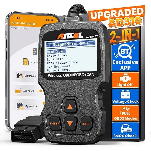 🚦【PROFESSIONAL VEHICLE CEL DOCTOR】The AD310BT car scanner diagnostic tool empower you to read DTC and turn off the Check Engine Light (CEL). Explore more advanced functions in the ANCEL APP, such as I/M Readiness, Battery Health Check, Freeze frame, O-2 sensor, On-Board Monitor, E-vap system test, Performance Test, Data Stream, Diagnostic reports, Trip analyse, etc.