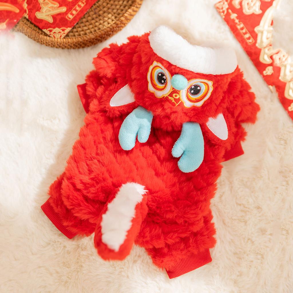 Hippie Dog New Year Dog Dragon Clothes Winter Cute Four Legged Velvet Clothes Small Dog Happy New Year Cat Pet Clothing