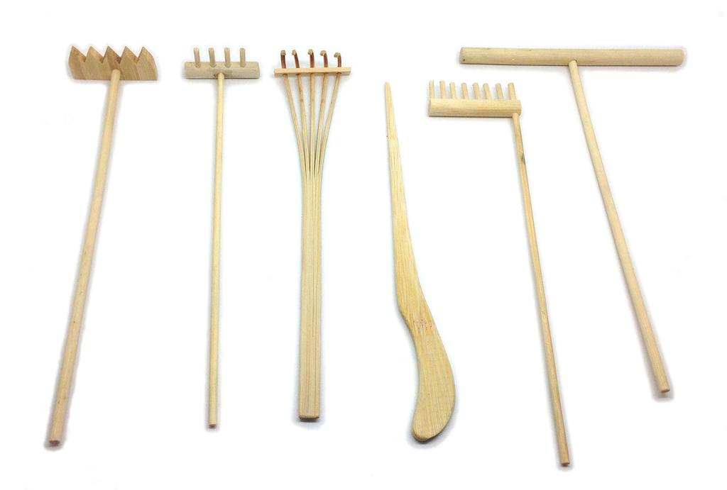 Mini Zen Garden Tool Rake Set, 6 Pieces, Rakes, Drawing Stylus, Sand Smoothing Push Rake