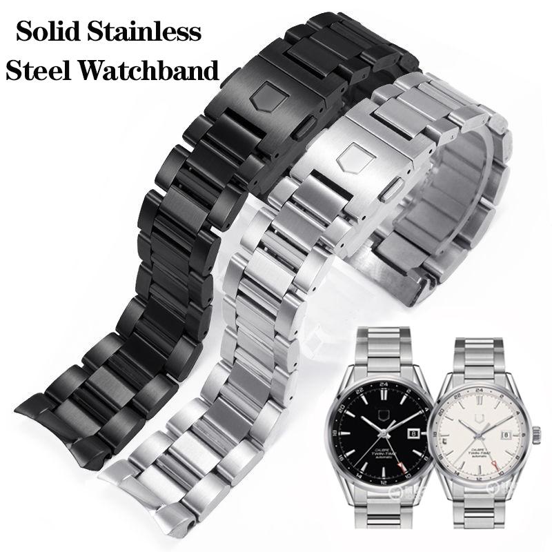 ONENew 22mm 24mm Solid Stainless Steel Watchband Bracelets Silver Black Curved End Link for TAG heuer Cal-era Watch Band Men StrapsMN — купити товар онлайн з безкоштовною доставкою по всьому світу!