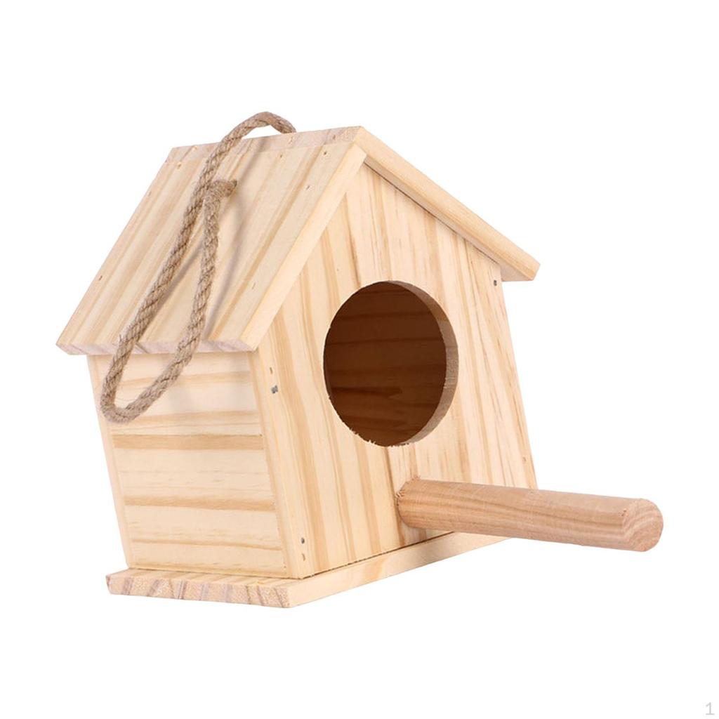 Decorative Wooden Bird House Nest with Pole Breeding Box Hanging for Outdoor Garden Finch