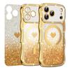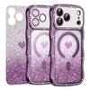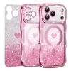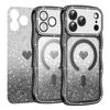 For iPhone 17 Pro Magnetic Case Electroplated Wave Frame Rhinestone Decor TPU PC Phone Cover with Love Glitter Paper