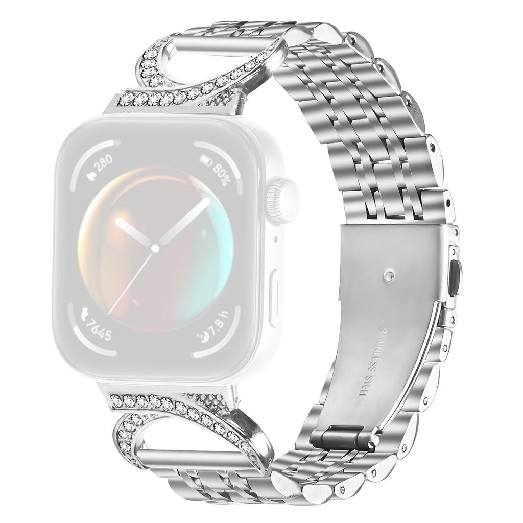 Ремінець для годинника Huawei Watch Fit 4 Pro/Fit 4/Fit 3, сім ланок, з нержавіючої сталі, зі стразами, з'єднувач у стилі бичачого рогу
