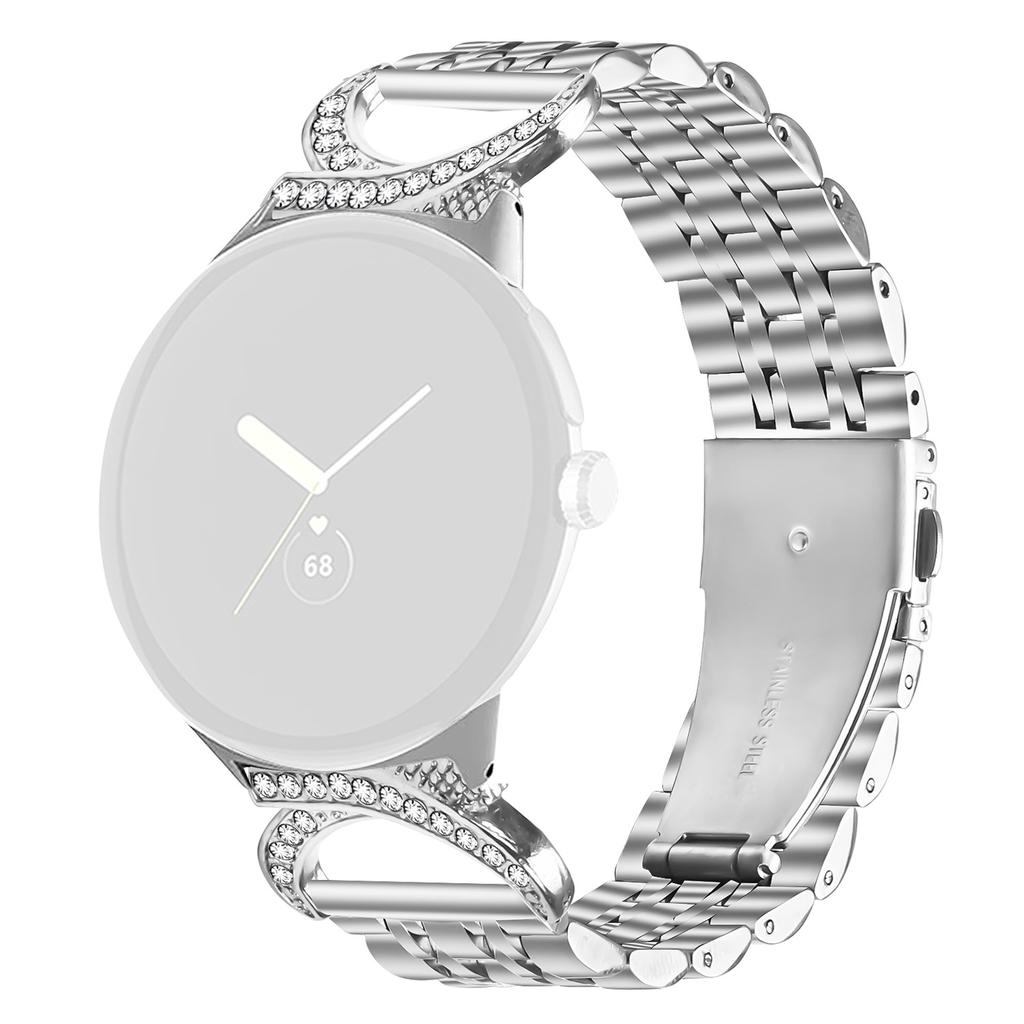 Watch Band for Google Pixel Watch 3 41mm/Watch 2/Watch Seven Bead Stainless Steel Strap with Rhinestone Ox Horn Style Connector — купити товар онлайн з безкоштовною доставкою по всьому світу!