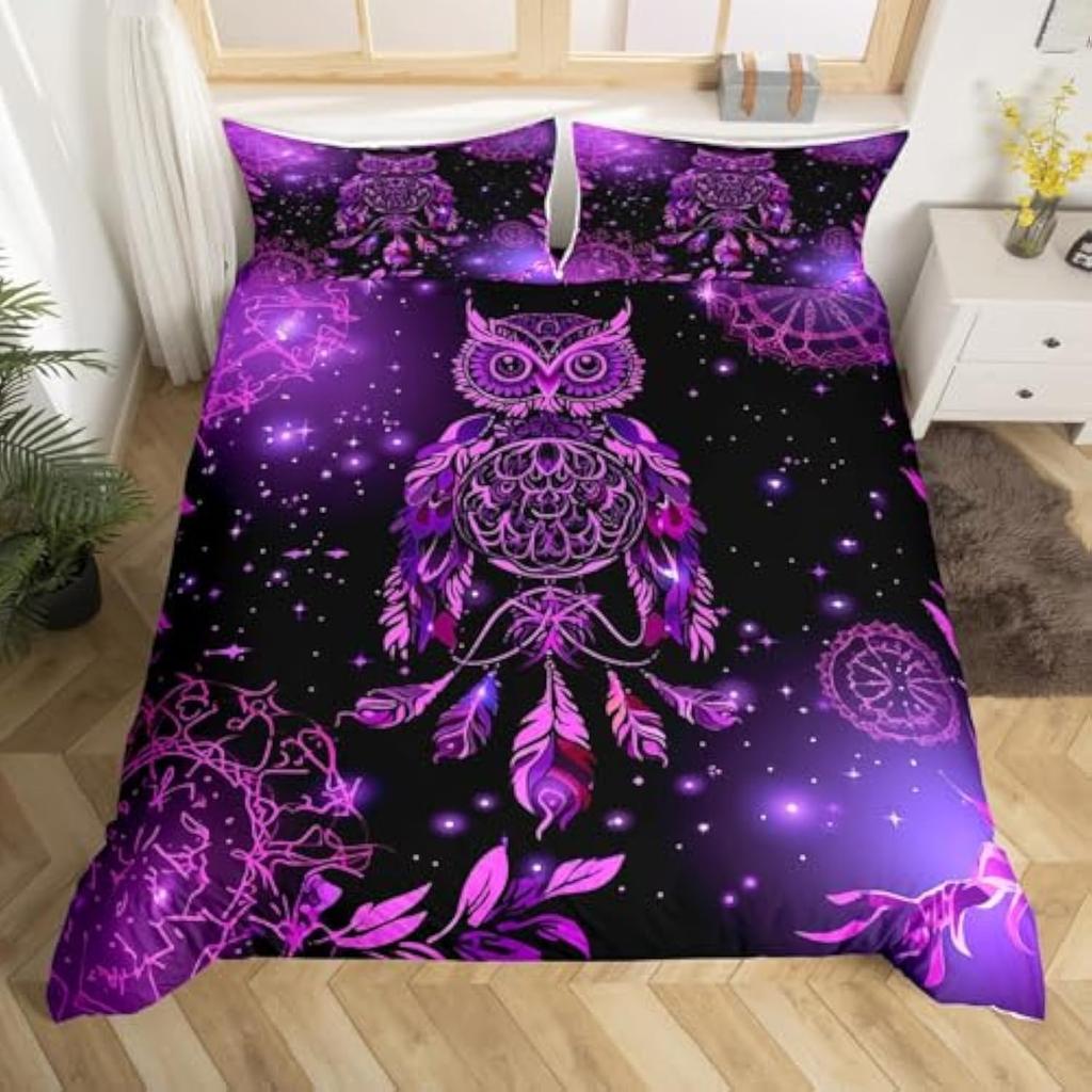 3D Owl Dreamcatcher Print Bedding Set for Kids Boys Girls Children Pet Animal Theme Comforter Cover Ultra Soft Brown Decor