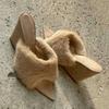 Sexy Spice Girl Fluffy Open-toed One-Word Slippers Design Sense Pointed Wedge Heel High Heel Boots