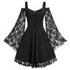 Rosegal Women Plus Size Gothic Blouse Star Embroidery Lace Up Cold Shoulder Flare Sleeve Casual Top