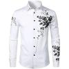 Pure White with Rose High-end Men's Long-sleeved Shirt Summer Fashion Outdoor Wear Polyester Fiber Digital Printing