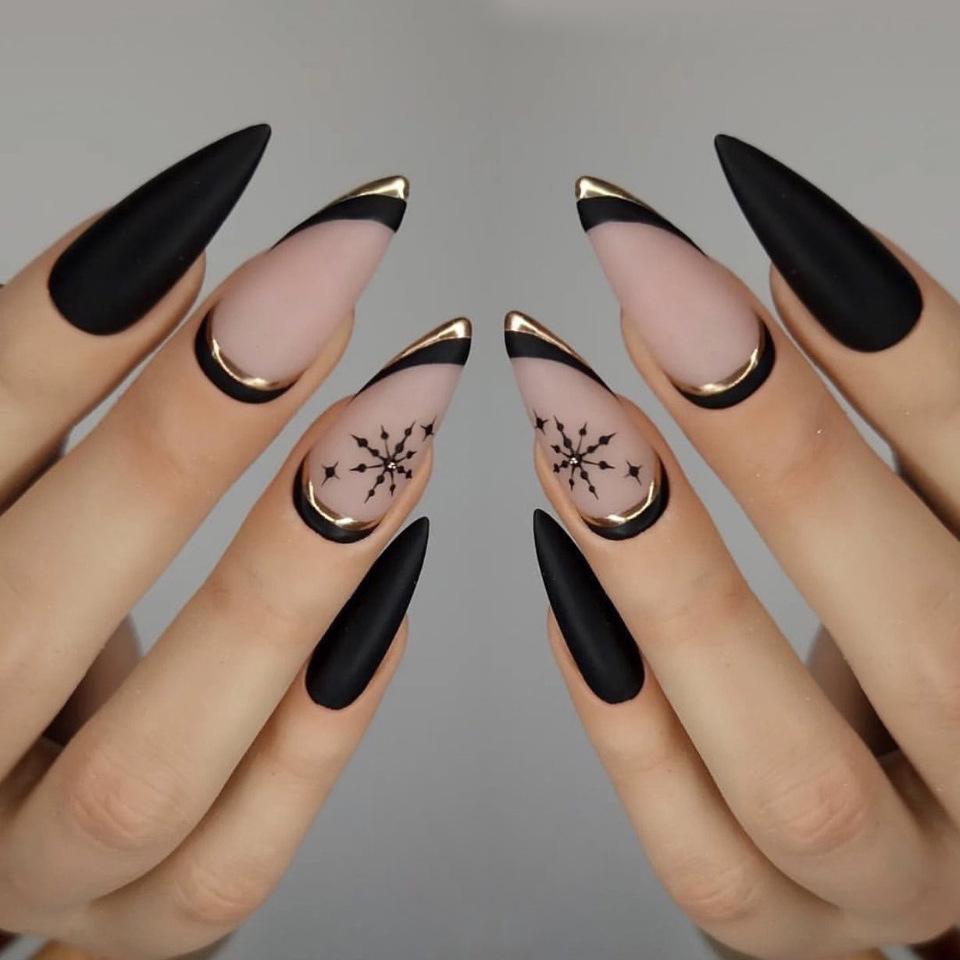 WM-36 Black Star Snowflake Christmas Wearable False Nails - Finished Nail Art Stickers — купити товар онлайн з безкоштовною доставкою по всьому світу!