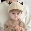 Cute Leopard Print Baby Winter Hat with Antlers - Unisex Korean Style Plush Baseball Cap