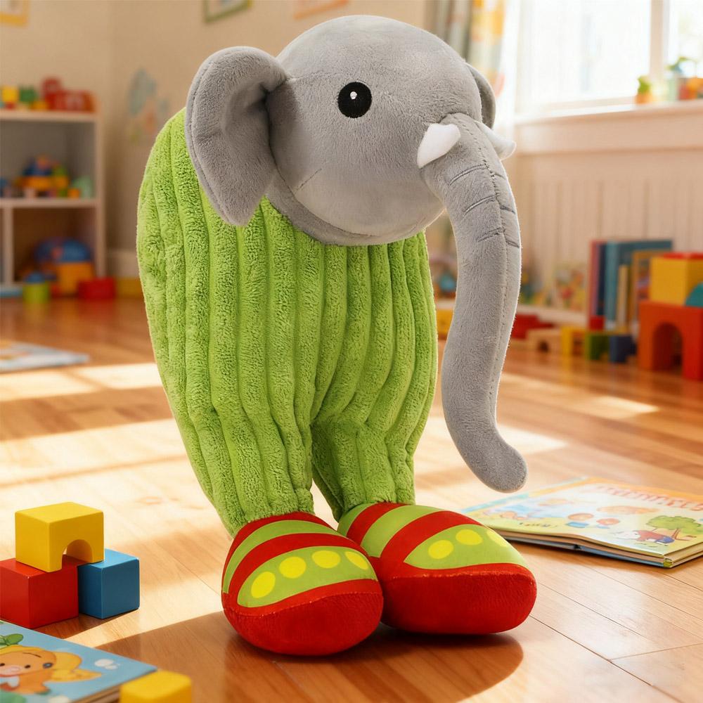 “Cartoon Stuffed Elephant Plush Toy Gray Head & Trunk with Green Striped Body Red-Yellow Polka Dot Feet