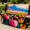 1pc Tulip Field Outdoor Flannel Blanket Soft All Season Polyester Throw , Perfect for Picnics & Travel , Picnic Accessory