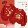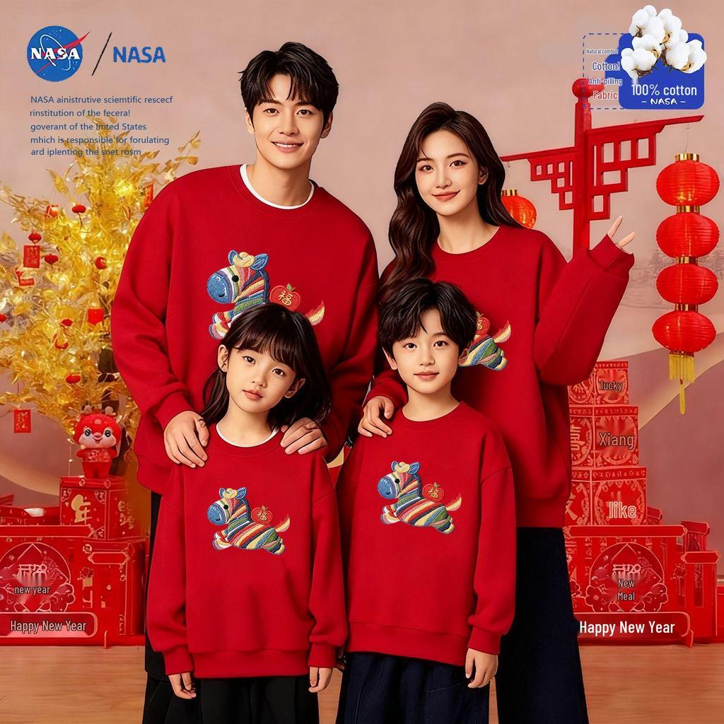 2026 Year of the Horse Family Hoodie: Zodiac Silver Fox Velvet Red Parent-Child Embroidery for New Year