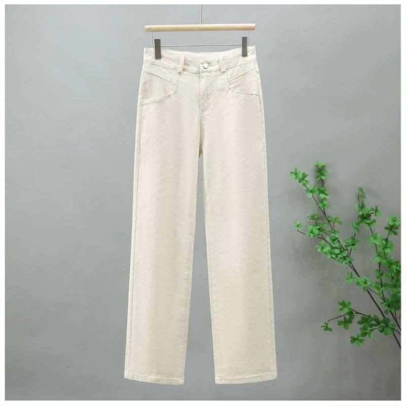 Жіночі бежеві джинси вільного крою з високою талією, довжина 9/10, повсякденні джинсові штани