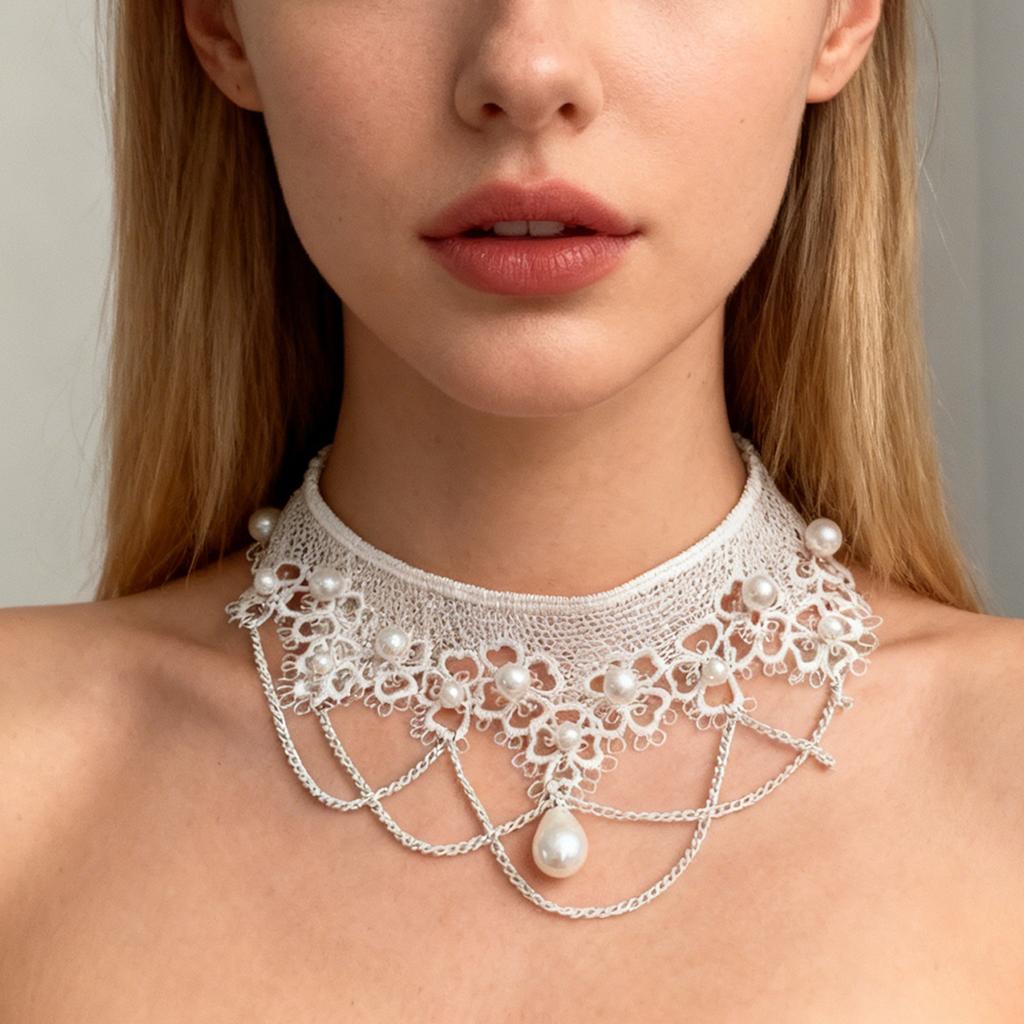 Європейський та американський ретро простий перловий мереживний намисто аксесуари для біжутерії для зовнішньої торгівлі перлинний ланцюжок на ключицю жіночий готичний чокер комір