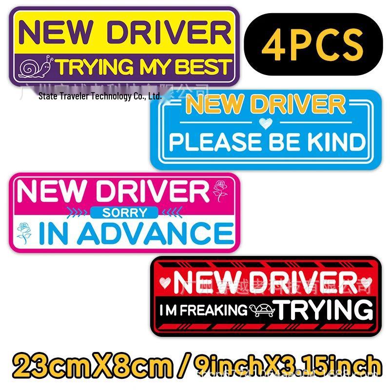 4 Reflective Magnetic Car Stickers: Safety Reminders for Student and Novice Drivers