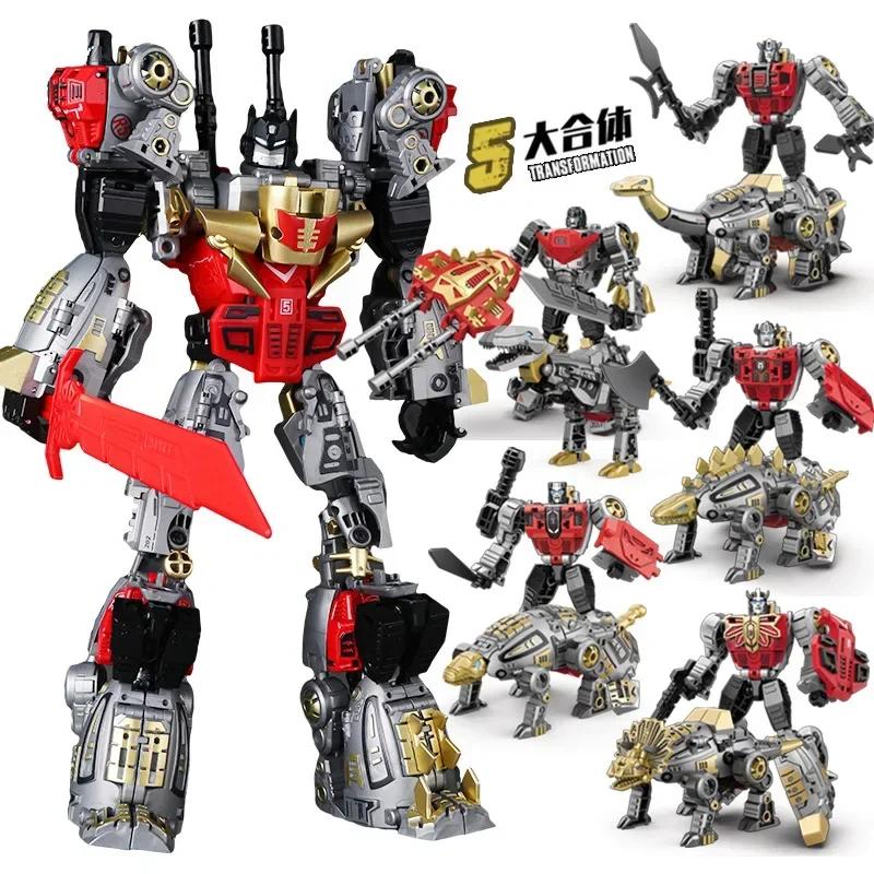 Transformation 6-inch 5 In 1 Combination Height 11-inch Alloy Dinosaur Troops Mechanical Beast Toys for Kids Ages 4 and Up