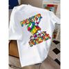 European sizes Round-Neck T-Shirt Featuring a Colorful Block Pattern And The Words Perfect for Casual Wear