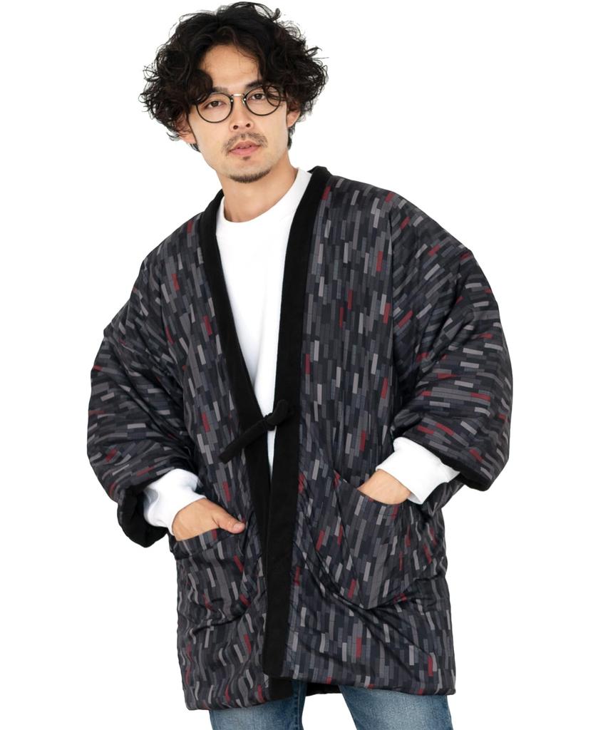 [KYOETSU] Men's Winter Fleece Hanten (5. Black One-Line Pattern, Size M)