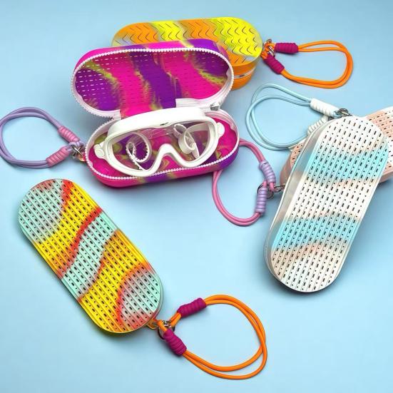 Застібка-блискавка забезпечує легкий доступ, а яскраві кольори допомагають швидко розпізнати ваше спорядження. Цей компактний футляр ідеально підходить для зберігання окулярів, шапочок для плавання, рушників швидкого висихання та інших дрібних предметів першої необхідності, а також є ідеальним аксесуаром для днів біля басейну та походів на пляж.. Міцний, еластичний силіконовий матеріал забезпечує тривалий захист та зручність.