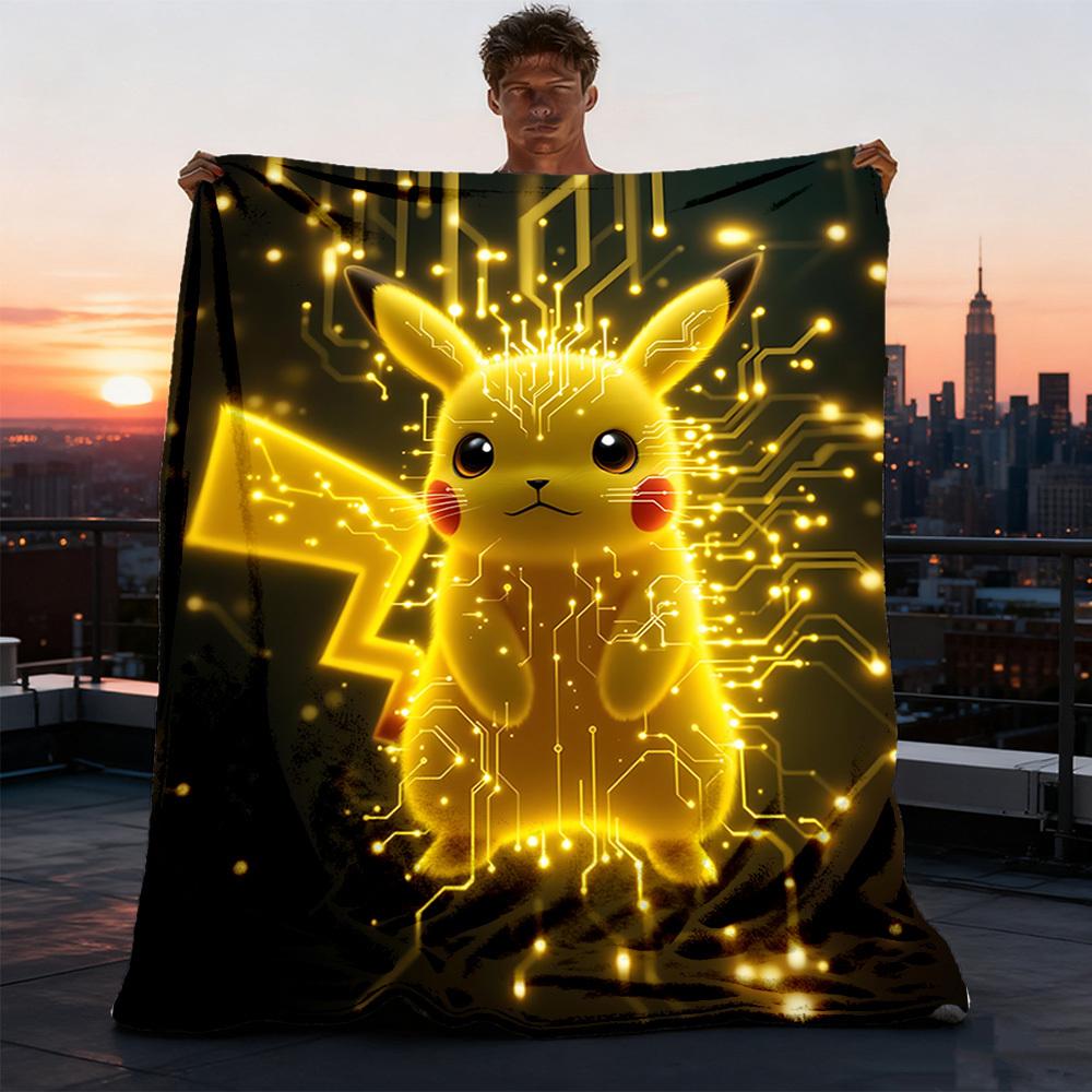 1pc Pikachu, Pokémon Outdoor Flannel Blanket, Lightweight Warm Cozy for Travel Camping Office Soft Polyester Fabric — купити товар онлайн з безкоштовною доставкою по всьому світу!