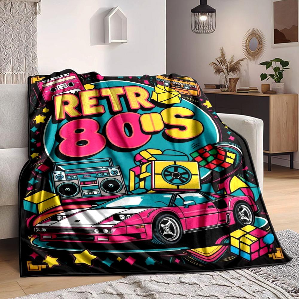 1pc Retro 80s Blanket Lightweight Flannel Blanket Throw Blanket For Sofa, Bed, Travel, Camping, Livingroom, Office, Couch