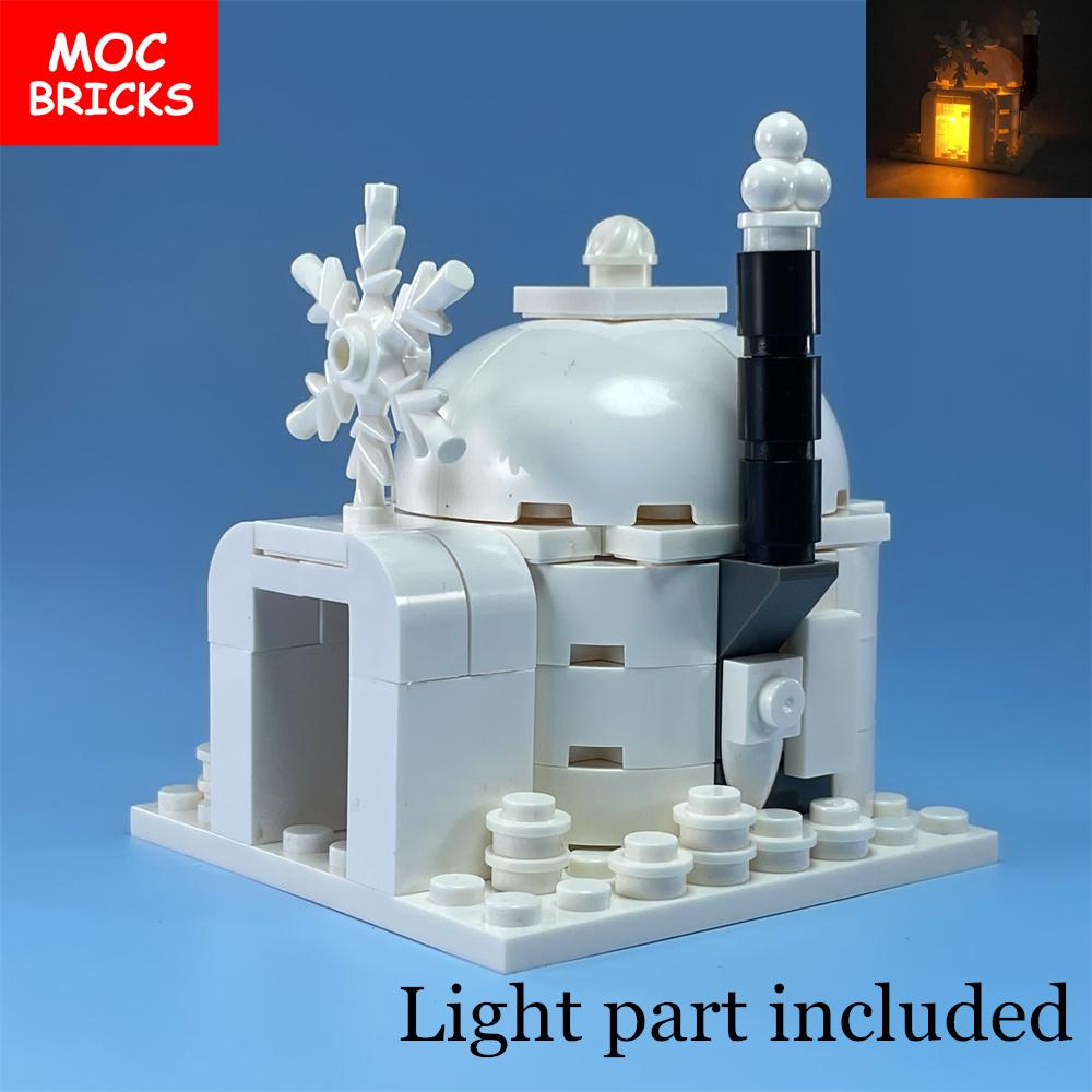 Set MOC Bricks Igloo Luminous House Famous City Architecture View Ice and Snow Educational Building Block Christmas Gifts