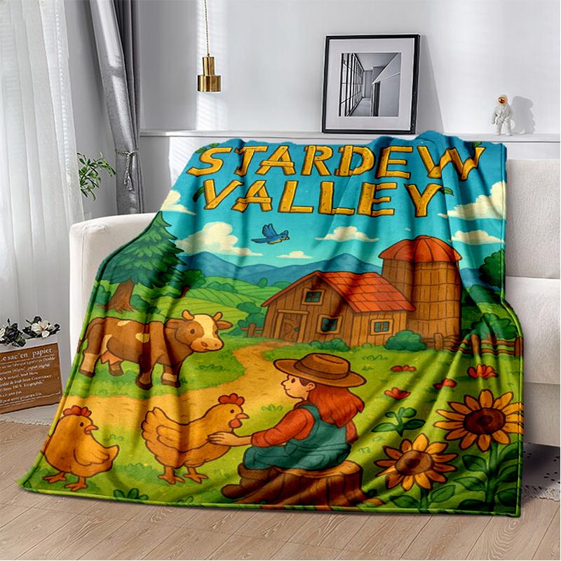 3D Stardew Valley Farm Map Game Cartoon Blanket,Soft Throw Blanket for Home Bedroom Bed Sofa Travel Picnic Cover Kids Gift