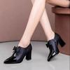 Жіночі чоботи Lady Повсякденні Висока якість Бант Темно-синій Комфорт Квадратний підбор Чоботи Жіночі Круті Чорні туфлі на підборах A9407