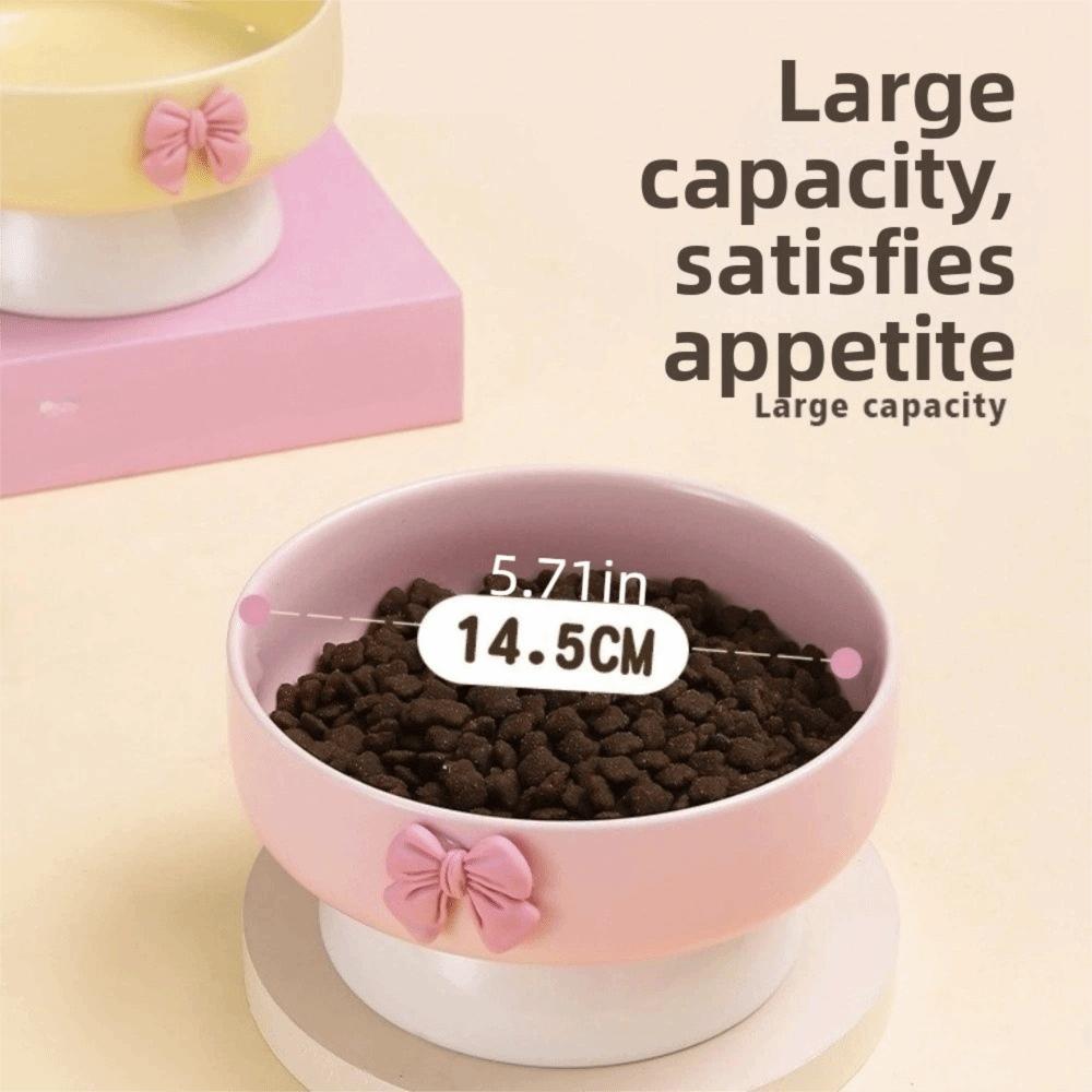 Large Capacity Ceramic Cat Bowl Non-Slip Base Macaron Colors Elevated Pet Bowl with Bow Pet Feeding Bowl Pet Feeding Drinking