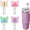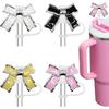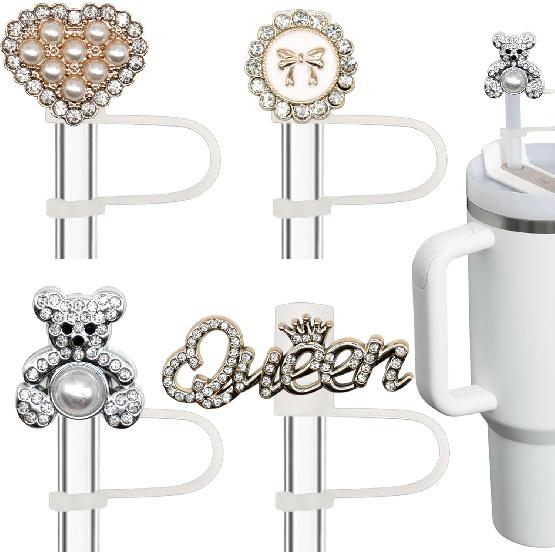 Bling Diamond Straw Cover for Stanley Cup Accessories - Silicone Straw Toppers with Silver Rhinestone fit 9-12mm Straws