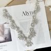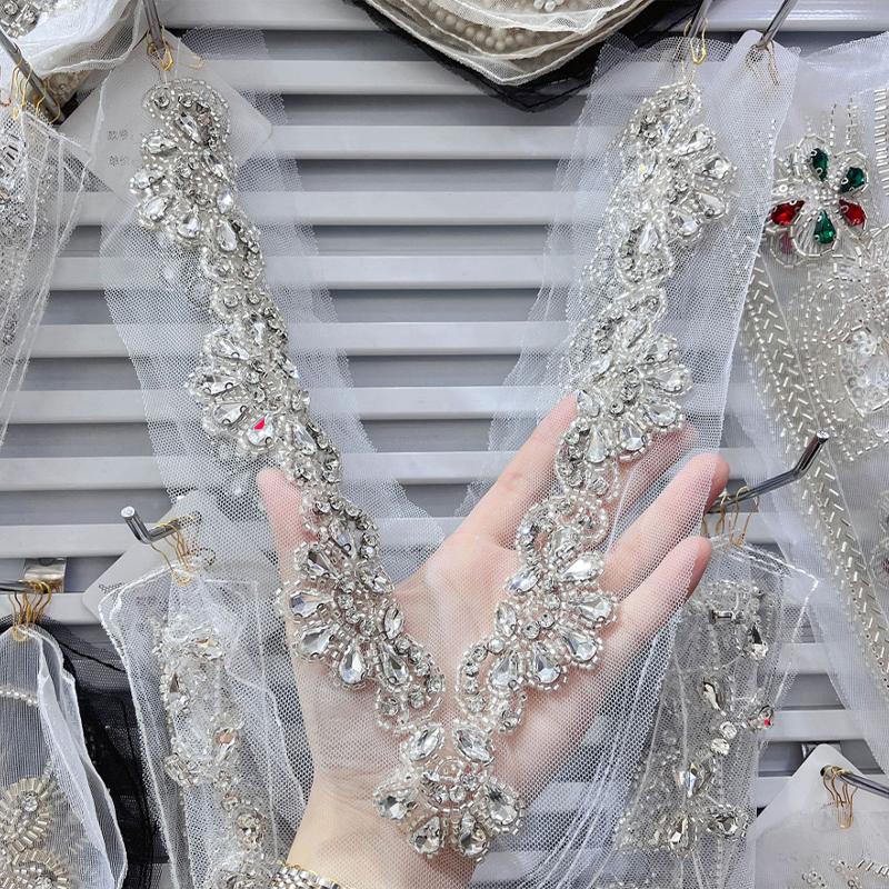 Heavy Industry Bead Rhinestone V-neck Decorative Applique Lace Mesh Bow Patches Clothing Dress DIY Sewing Accessories