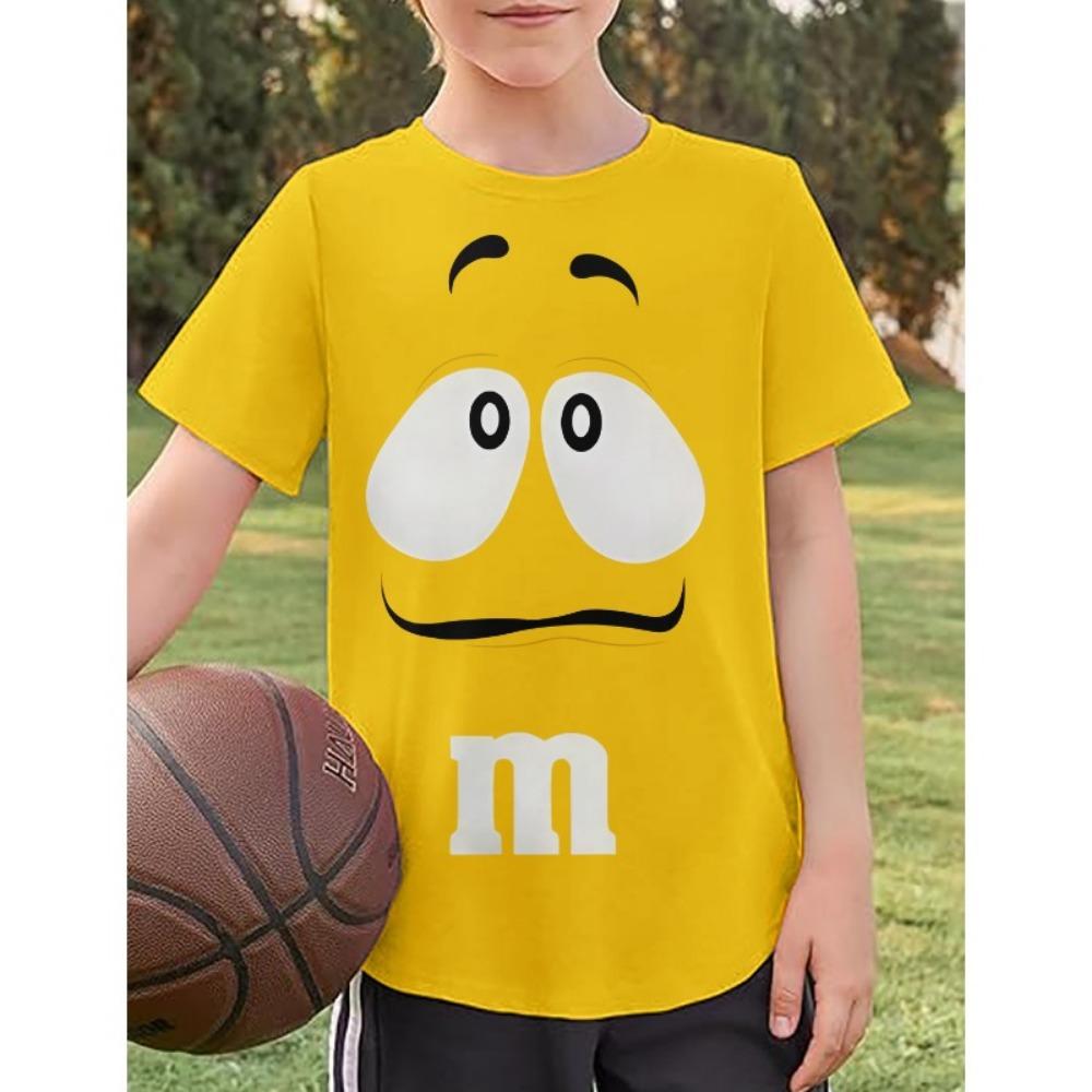 Summer Crewneck M&M Chocolate Bean Innovative Children T Shirts Fashion Boys Childrens Clothing Fun 3D Cartoon Print Soft Tees 3D Printed Anime Tops — купити товар онлайн з безкоштовною доставкою по всьому світу!