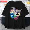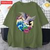 Cranes Enjoy Blooming Flowers Men T Shirts Vintage Fashion Soft Short Sleeve Summer Comfortable TShirt Unisex Cotton Loose Top