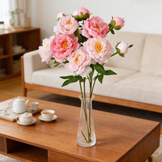 Real Touch Artificial Peony Flower Faux Silk Peony with Long Stem for Valentine's Day Floral Arrangement Wedding Party Home Kitchen Vase Decor