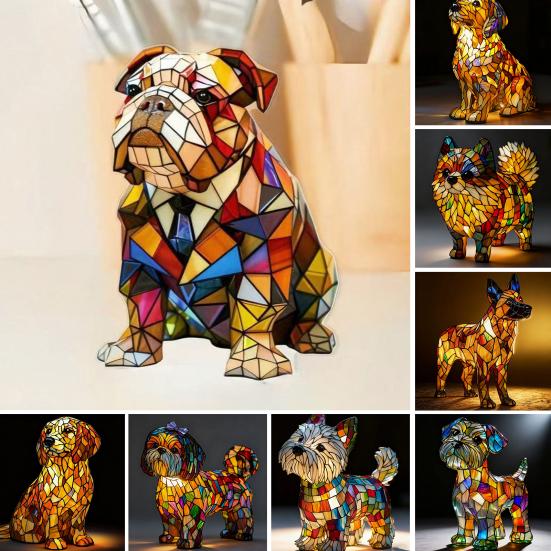 Лампа-песик зі скла Тиффані з USB-живленням Ретро-лампа з полімерної смоли Веселковий песик Настільна лампа Миле цуценя Світлодіодний нічник для спальні Робочого столу Декор для дому Подарунок для любителів собак — купити товар онлайн з безкоштовною доставкою по всьому світу!