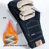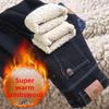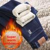 Зимові прямі джинсові штани Lamb Fluff Чоловіки Потовщені Джинси великого розміру 40 з високою талією Стрейч Джинси на флісовій підкладці Теплі тонкі