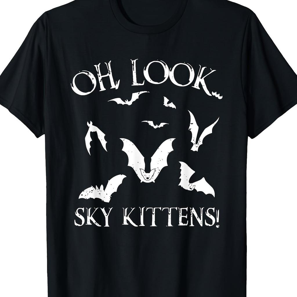 Mens Bat Graphic TShirt Oh Look Sky Kittens Design Soft 180g Pure Cotton Casual Short Sleeve Tee for Casual Attire
