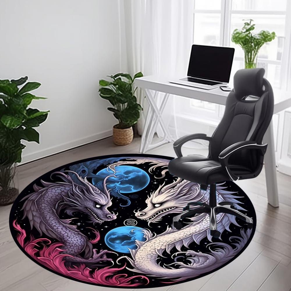 1pc Dragon Yin Yang Chair Carpet for Office, Round Non Slip Durable Large Size Office Carpet, Suitable for Office