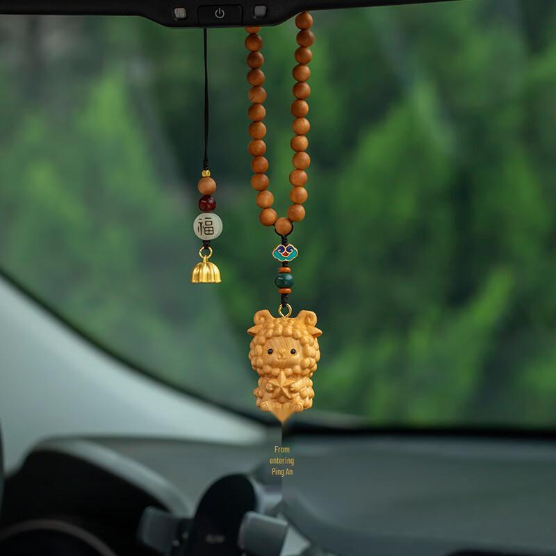 OLOMM Natural Thuja Wood Carving Zodiac Sheep Car Pendant