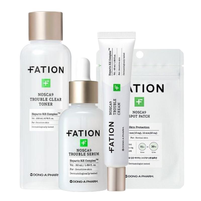FATION Nosca9 Trouble Care 4-Step Set (Spot Patch 102 Patches + Toner 200ml + Serum 30ml + Cream 45ml) Acne Soothing & Targeted Care