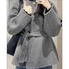Korean Style Grey Wool Coat: 2025 Autumn/Winter Petite Belted Hepburn Woolen Outerwear