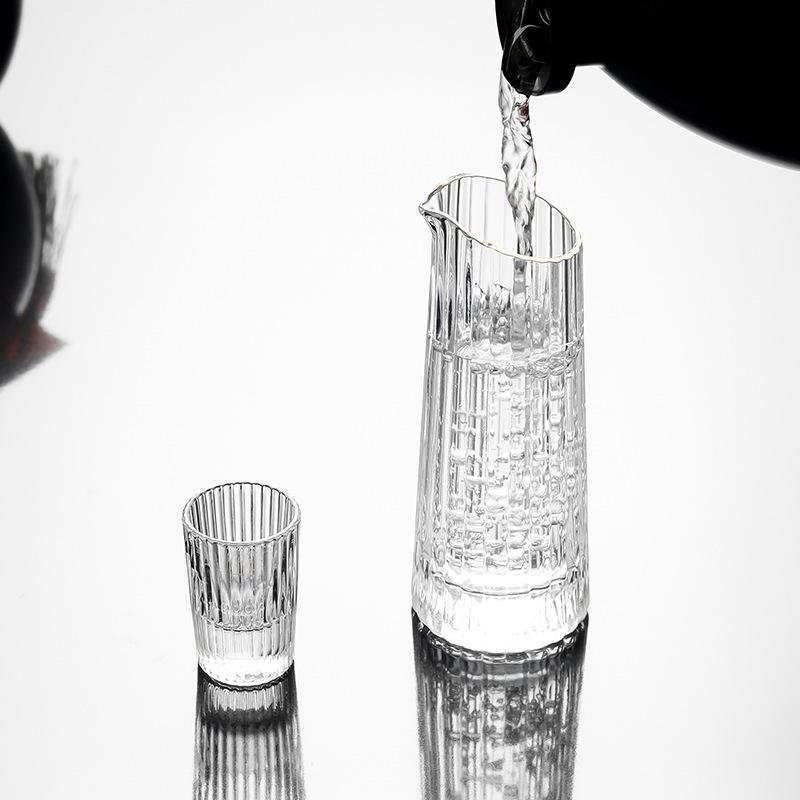 Striped Crystal Baijiu Decanter Set with Shot Glasses for Home and Bar Use