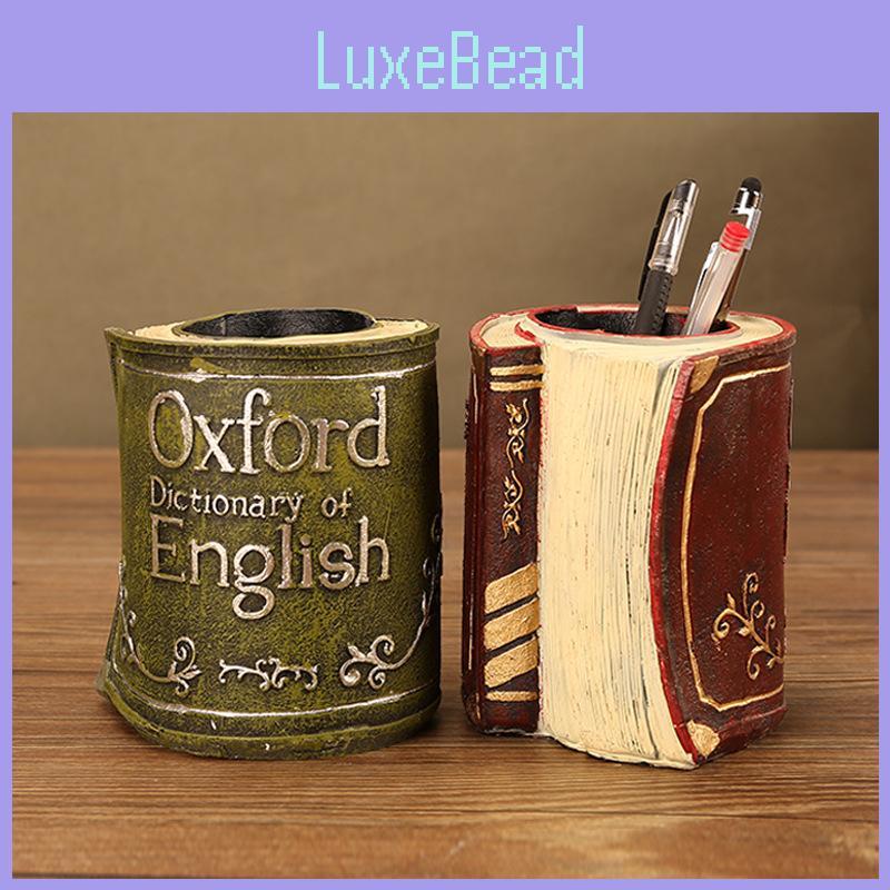 Vintage Book Style Resin Pen Holder Multifunctional Desktop Organizer For Home Office