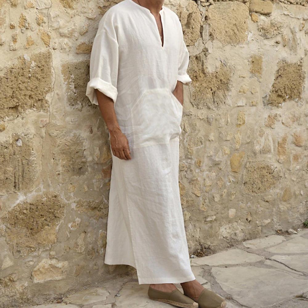 Чоловічі бавовняні лляні довгі сорочки з V-подібним вирізом і довгими рукавами, топи, сорочки, повсякденні, вільного крою — купити товар онлайн з безкоштовною доставкою по всьому світу!