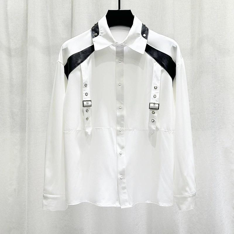 Весна Осінь Дизайн Нішевий Сплайсинг Сорочка з Довгим Рукавом для Чоловіків Особистість Вільна та Універсальна Сорочка для Чоловіків