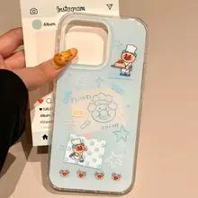 Korean Ins Blue Chef Old Man Cartoon Cute Phone Case for iPhone 17 16e 16 15 14 13 12 11 Pro Max X Xs Air Plus Feather Texture — купити товар онлайн з безкоштовною доставкою по всьому світу!